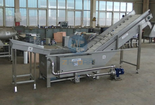 ????該機(jī)由機(jī)架、水箱、風(fēng)機(jī)、提升機(jī)、氣泡管、噴水管等幾部分組成,工作時(shí)由于水中風(fēng)力的存在,蔬果在水中任意方向翻滾轉(zhuǎn)動(dòng),并在高壓水力的推動(dòng)下向前移動(dòng),在出料口由一刮板提升機(jī),將果蔬送至下道工序。整體為分體式結(jié)構(gòu),水箱與輸送機(jī)、進(jìn)出料斗、罩板方便拆卸,易于清洗和檢修。